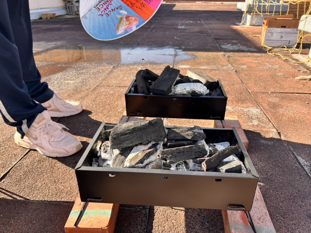 11月中旬 施設の屋上で焼き芋を焼きました。